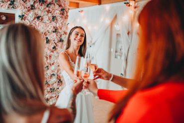 Při rezervaci je potřeba zaplatit jen rezervační poplatek 497 Kč a následně je vše zdarma – 90 minut péče, neomezené prosecco, káva a možnost vyzkoušet neomezený počet šatů.